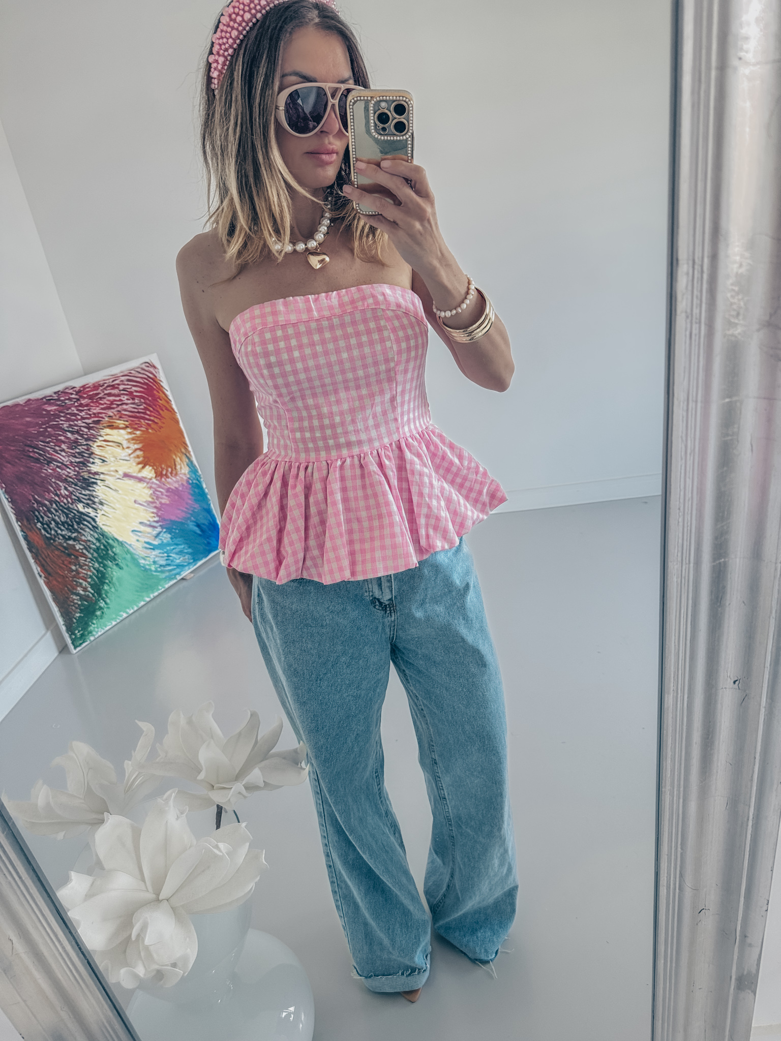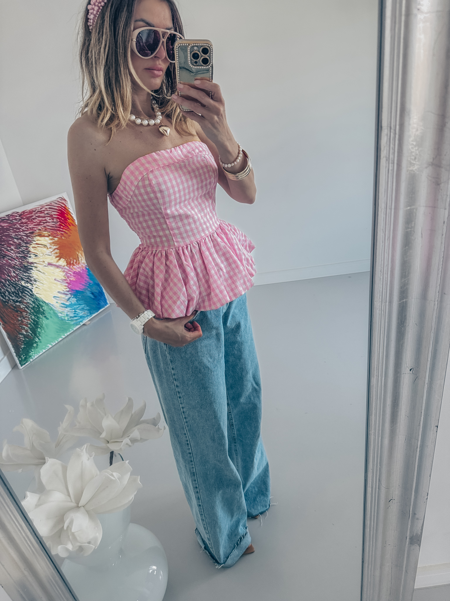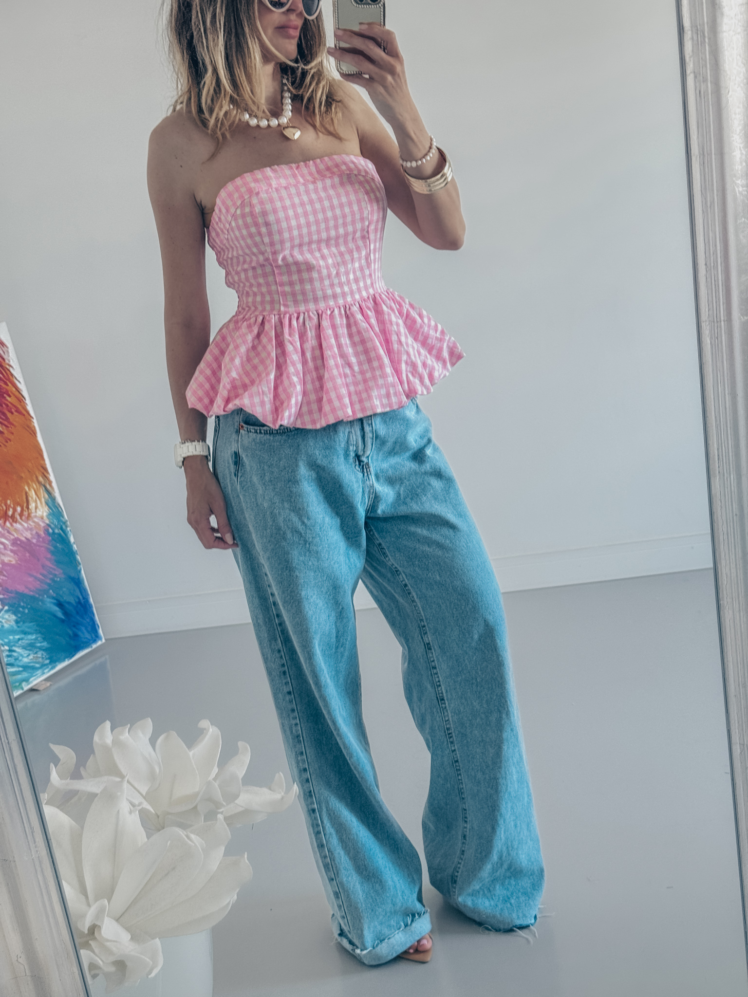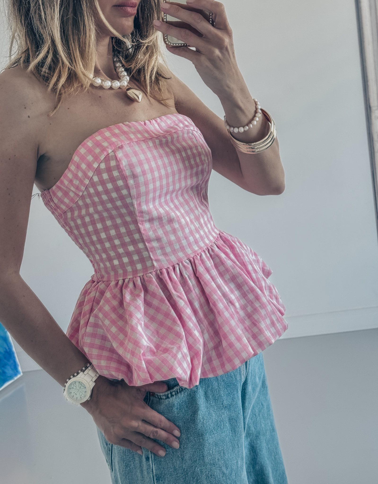 Bluzka z bawełny marszczona z tyłu bardzo dobrze trzyma biust i możesz założyć stanik na zdjęciu ze stanikiem