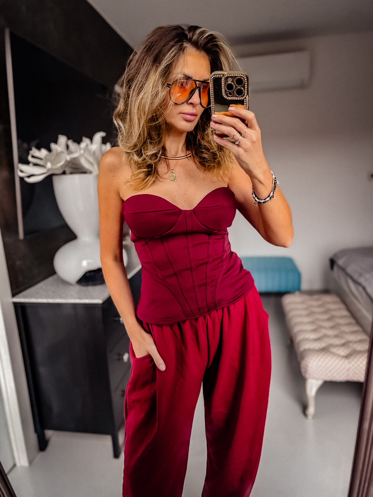 Gorset bordowy mocno elastyczny dobrze się dopasowuje do ciała ładnie podkreśla sylwetkę jest elastyczne z tyłu zapinane na zamek cudo na żywo