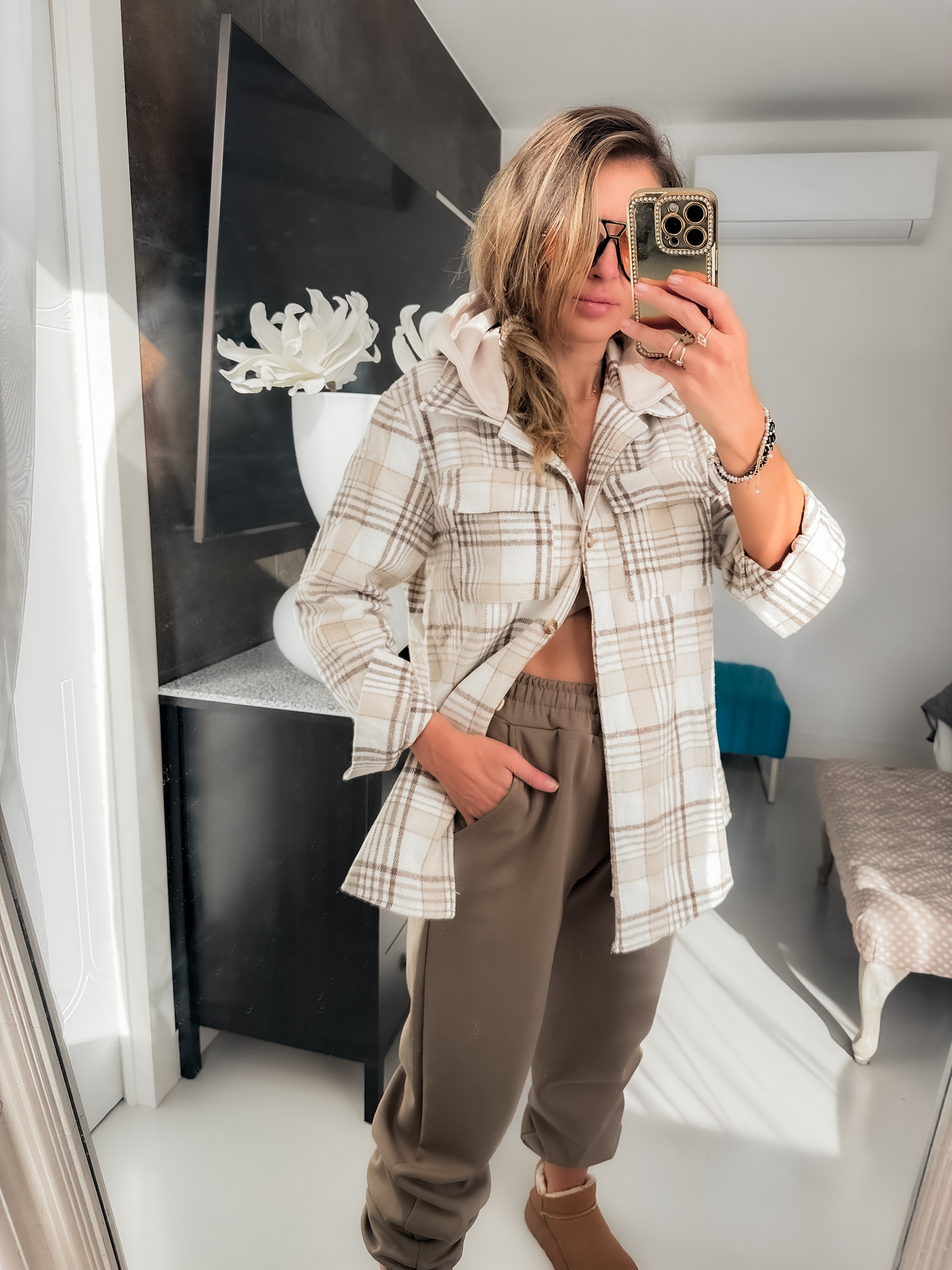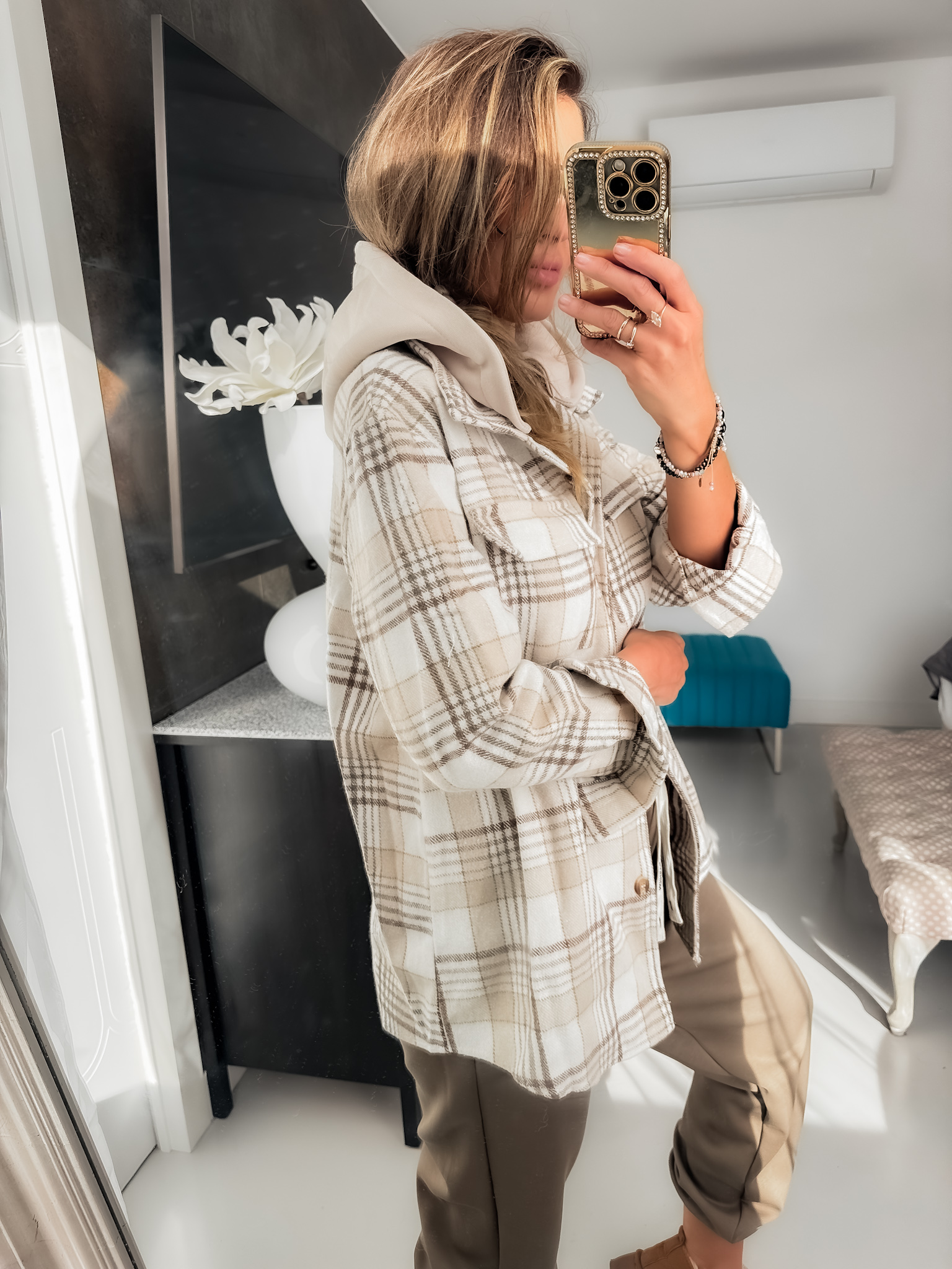 Koszula – bawełna kratka kaptur