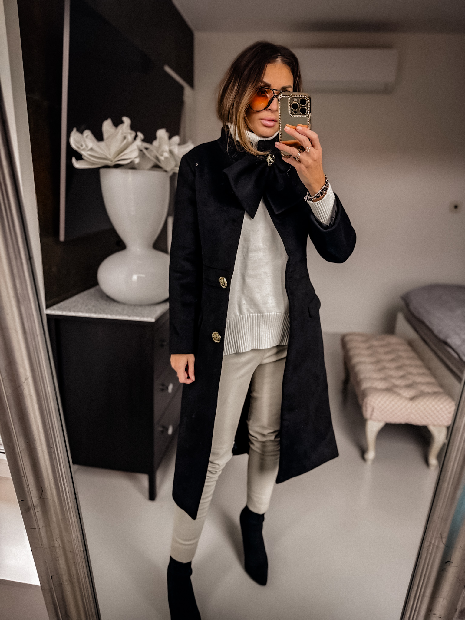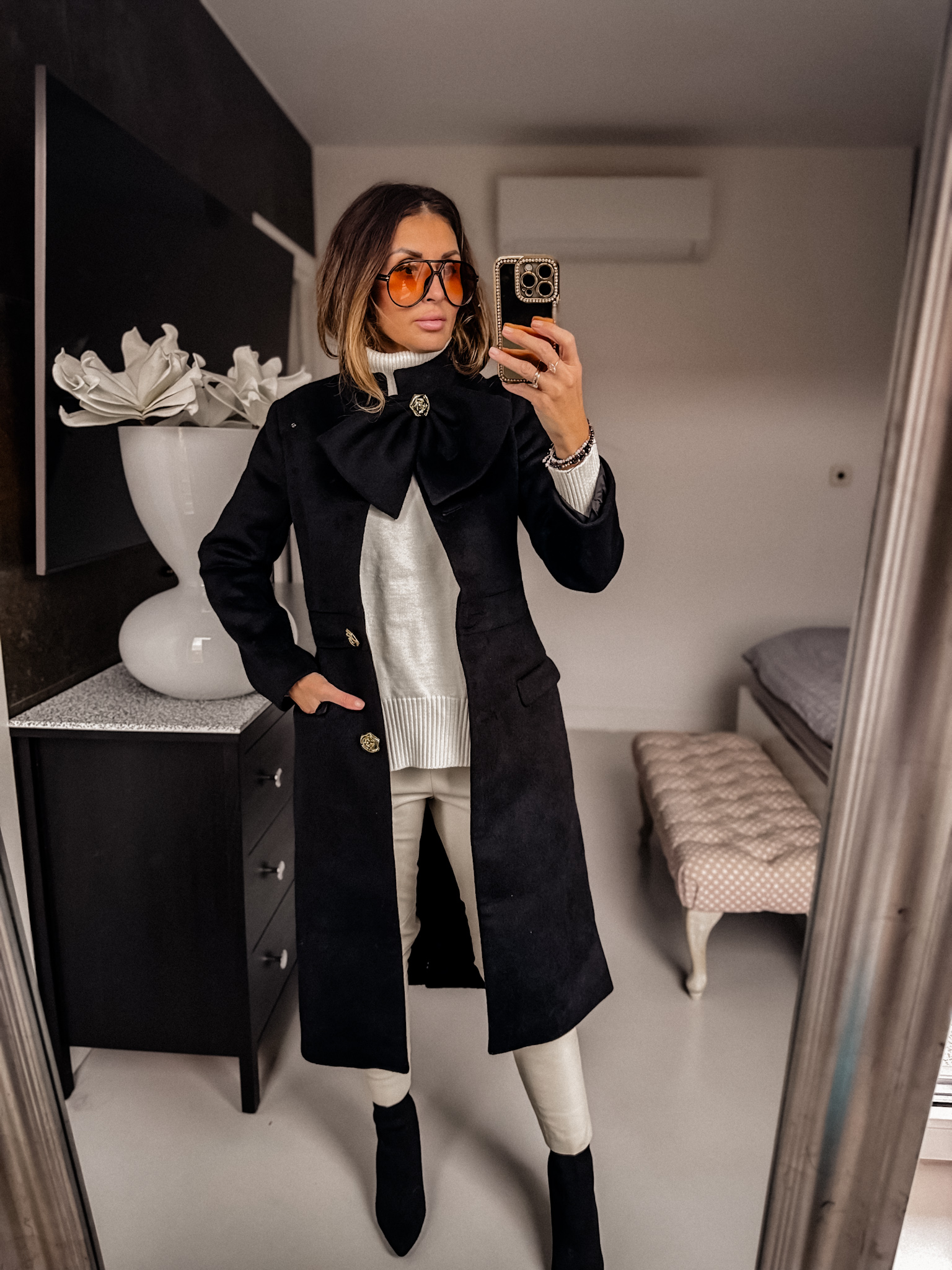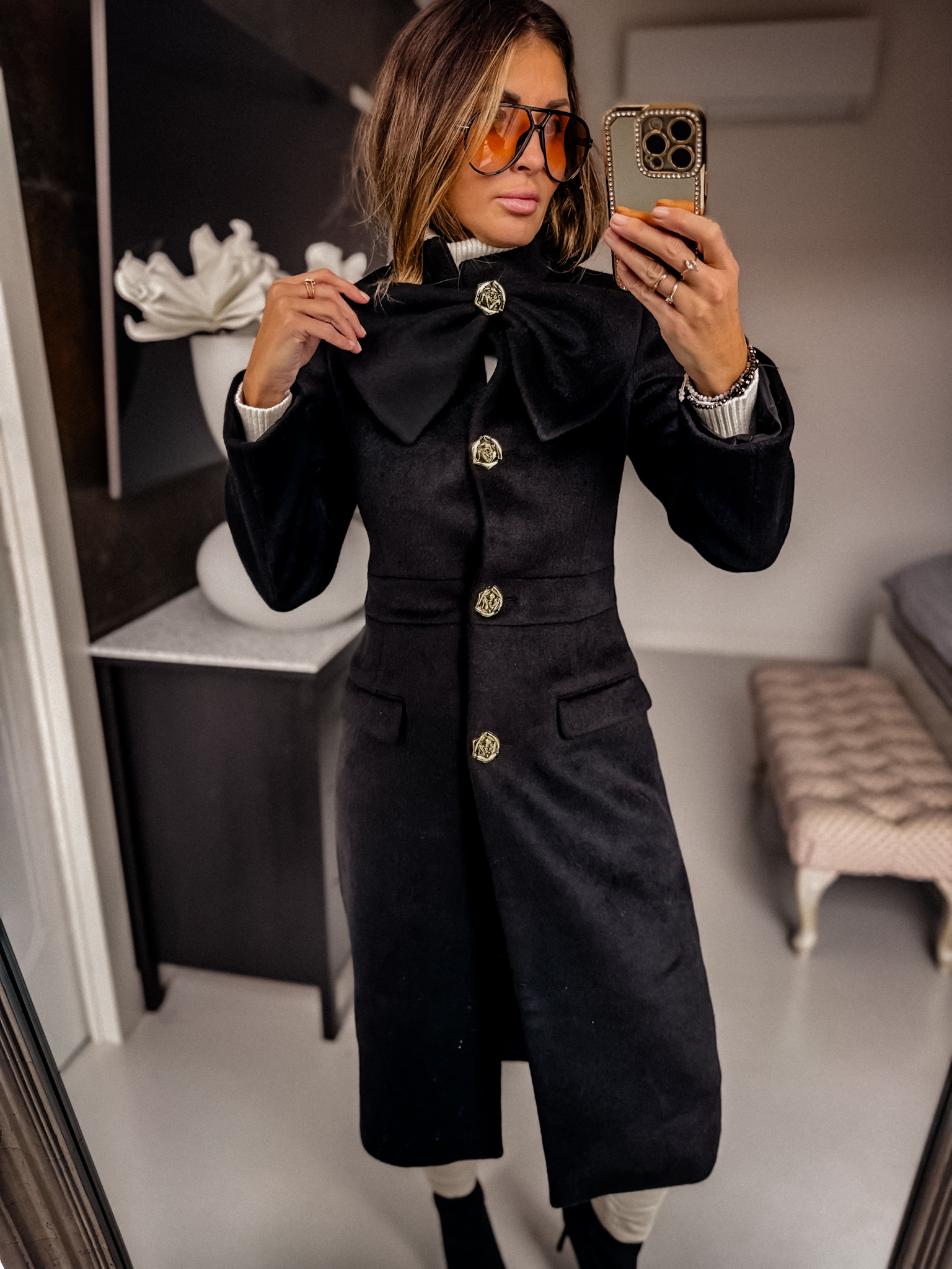 Płaszcz – Gruby z wełną Czarny kokarda