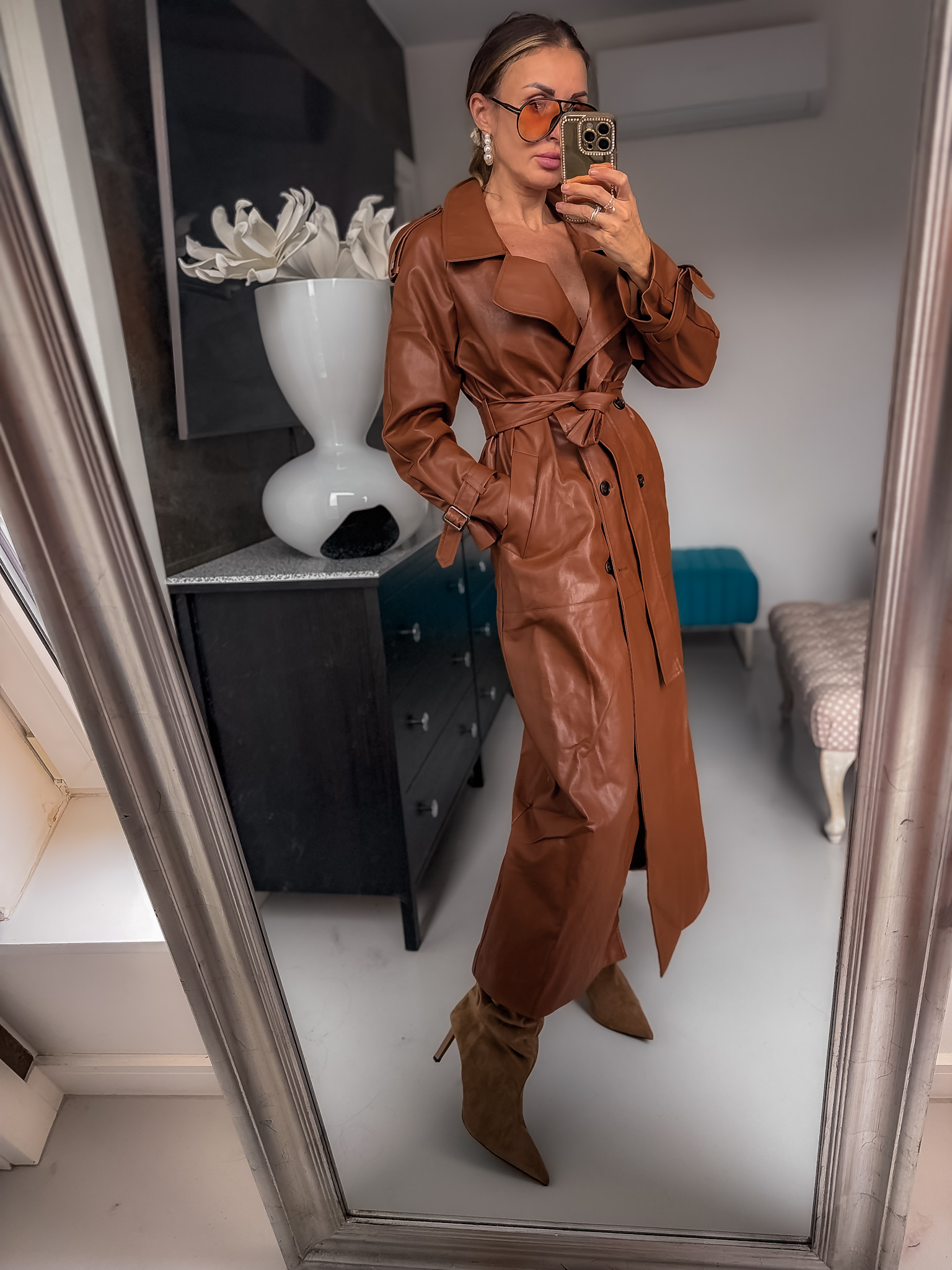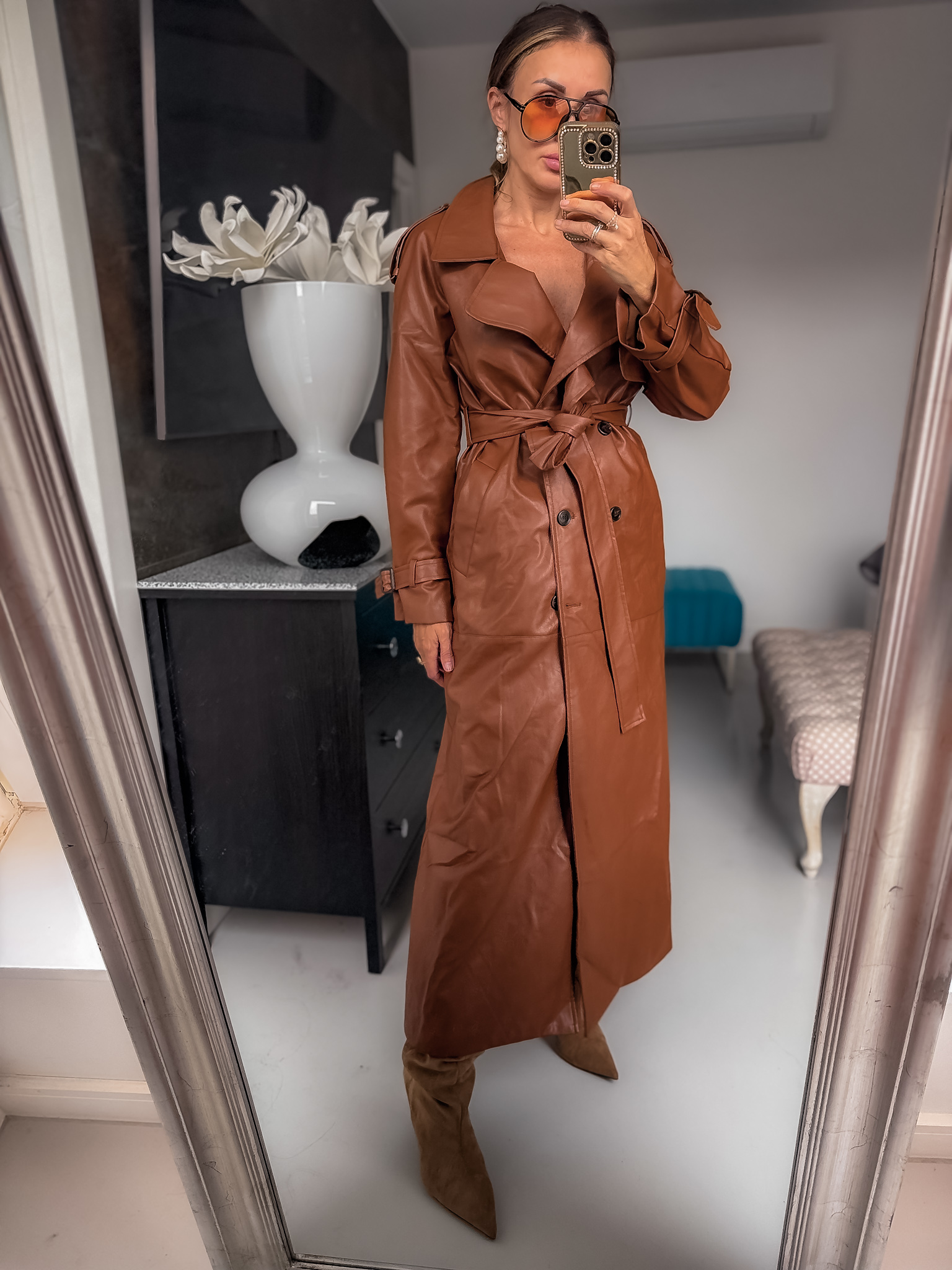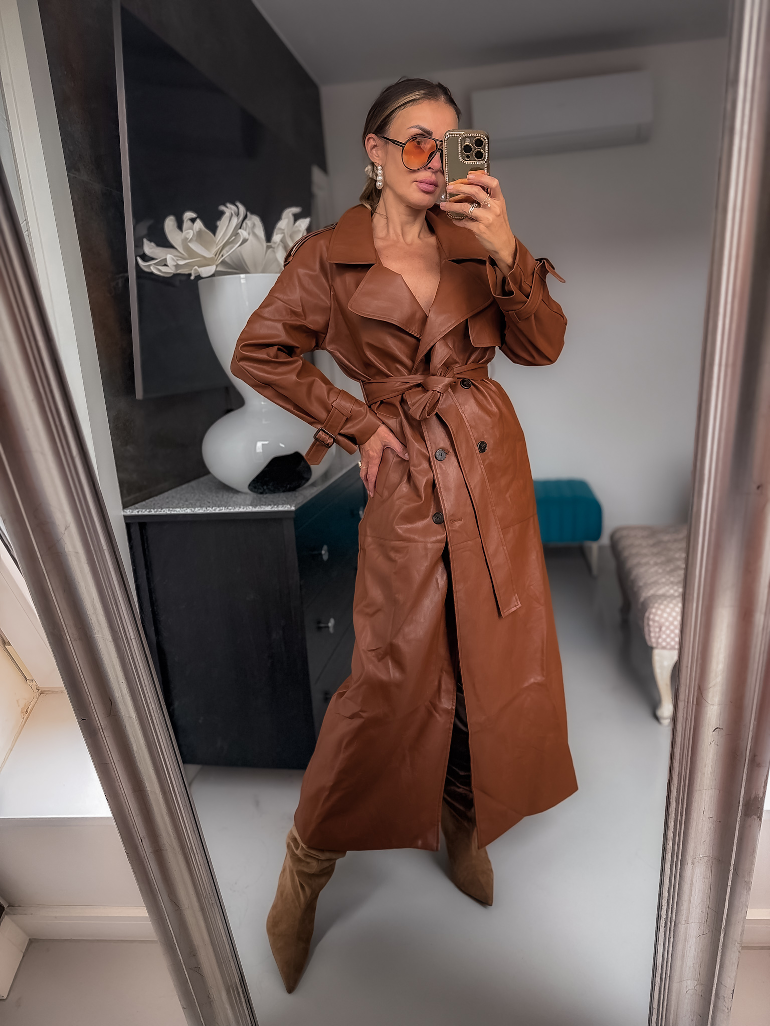 Plaszcz ze skóry pu z podszewką posiada wiązanie przy rękawach jest długi a skóra bez połysku matowa gruba i wyjonanie Premium najmodniejszy tego sezonu idealny na jesień ładnie skrojoną posiada guziki