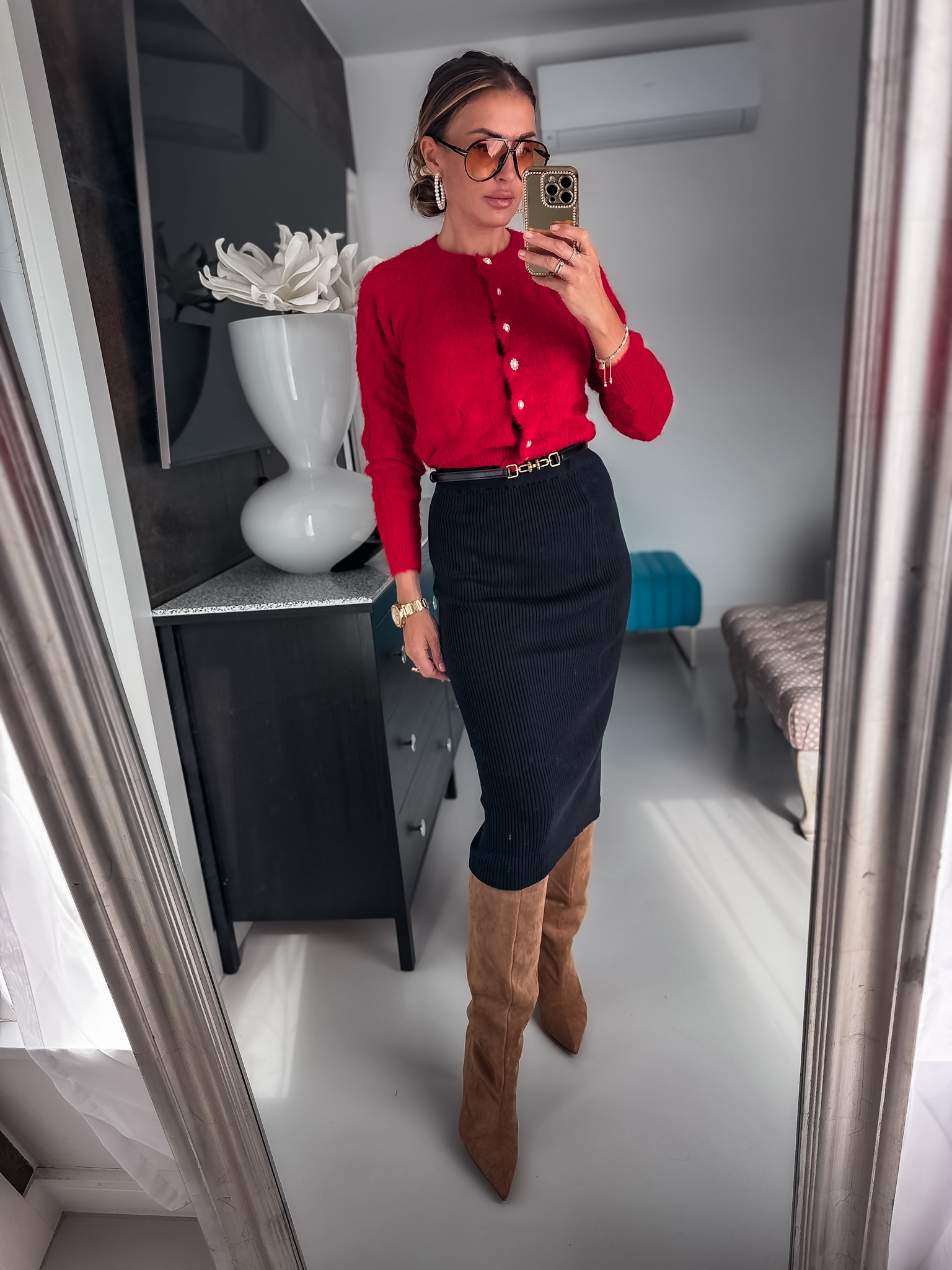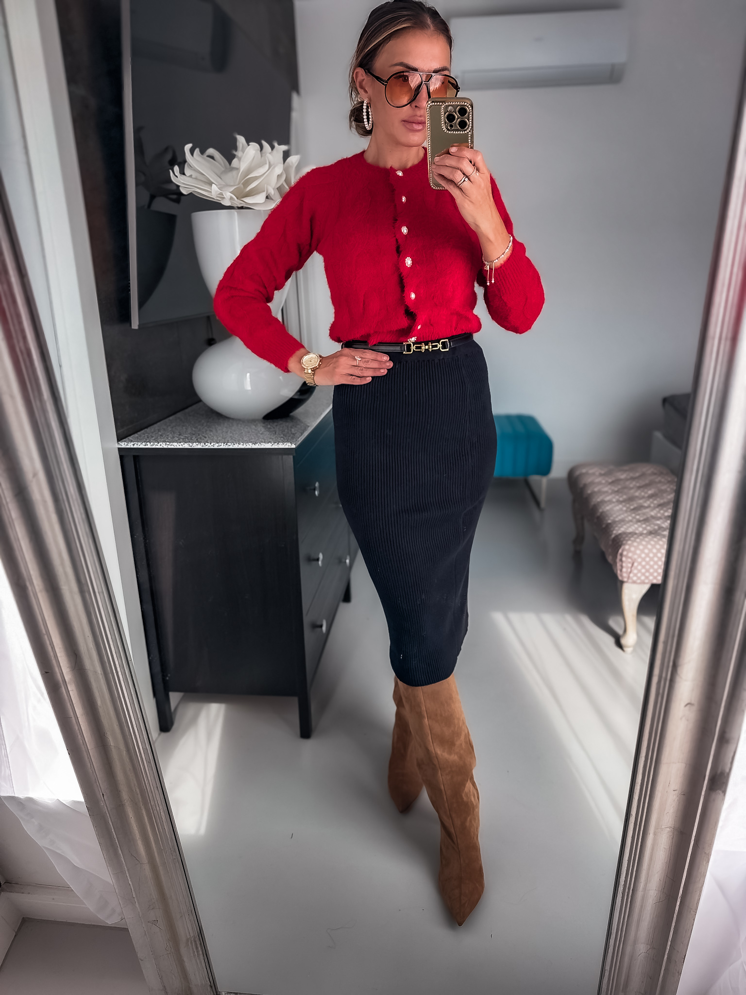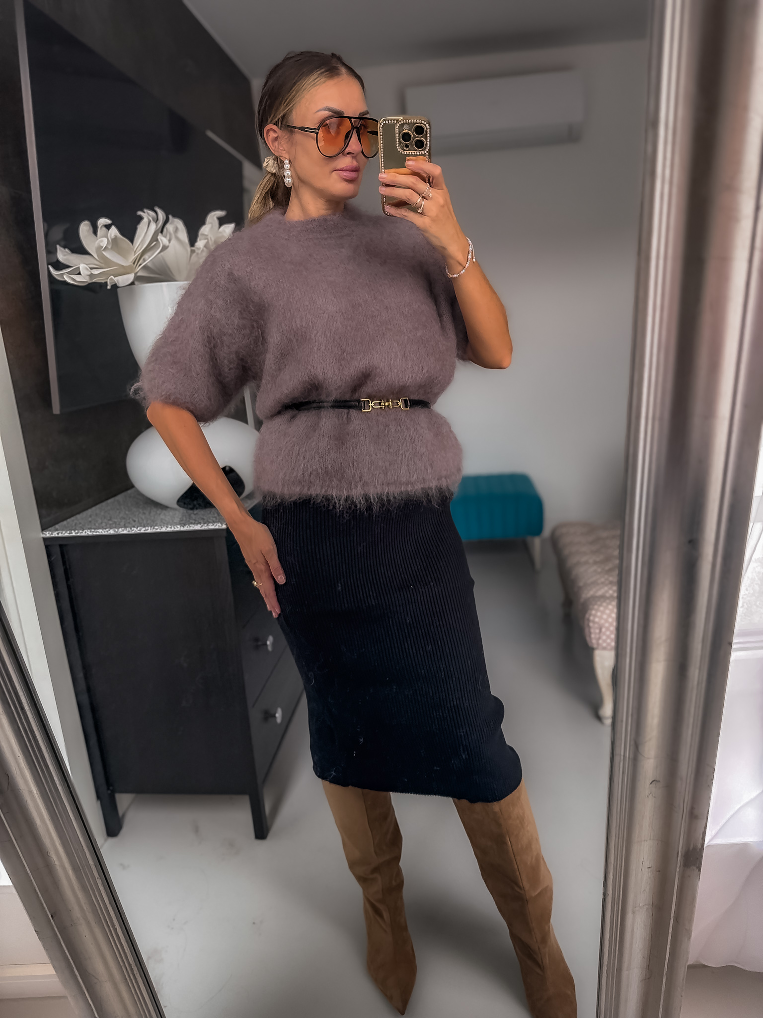 Spódnica swetrowa tkanina elastyczna ma gumkę w talii jest elastyczna przepięknie podkreśla sylwetkę ma wysoki stan wyszczupli brzuch w talii
