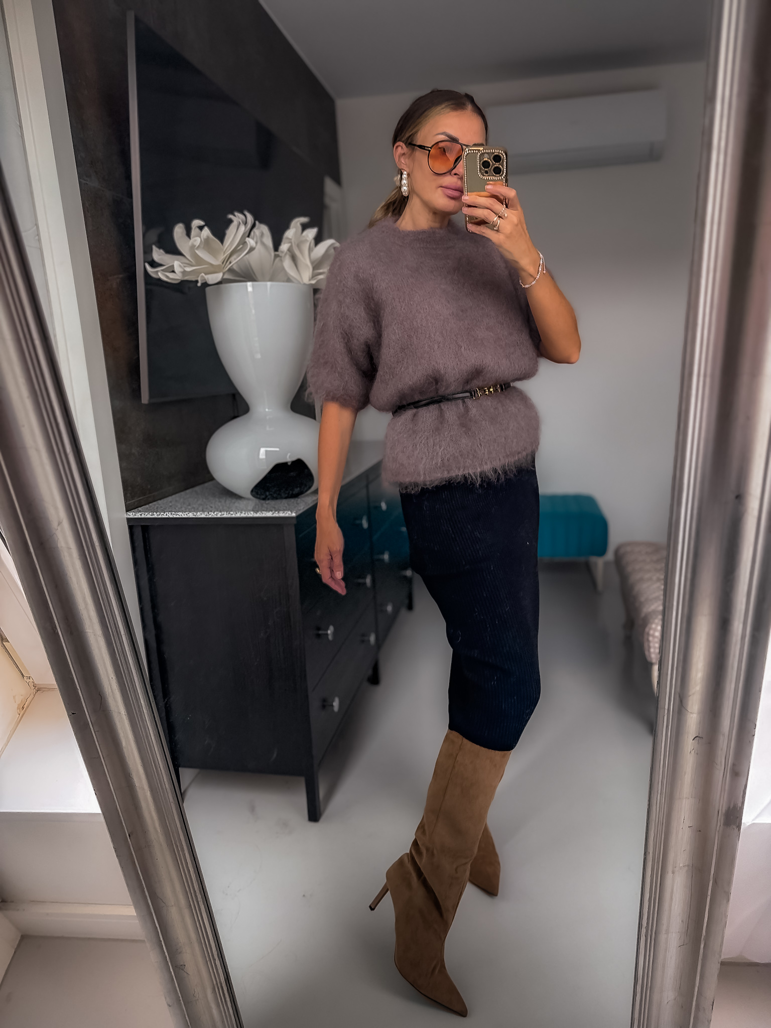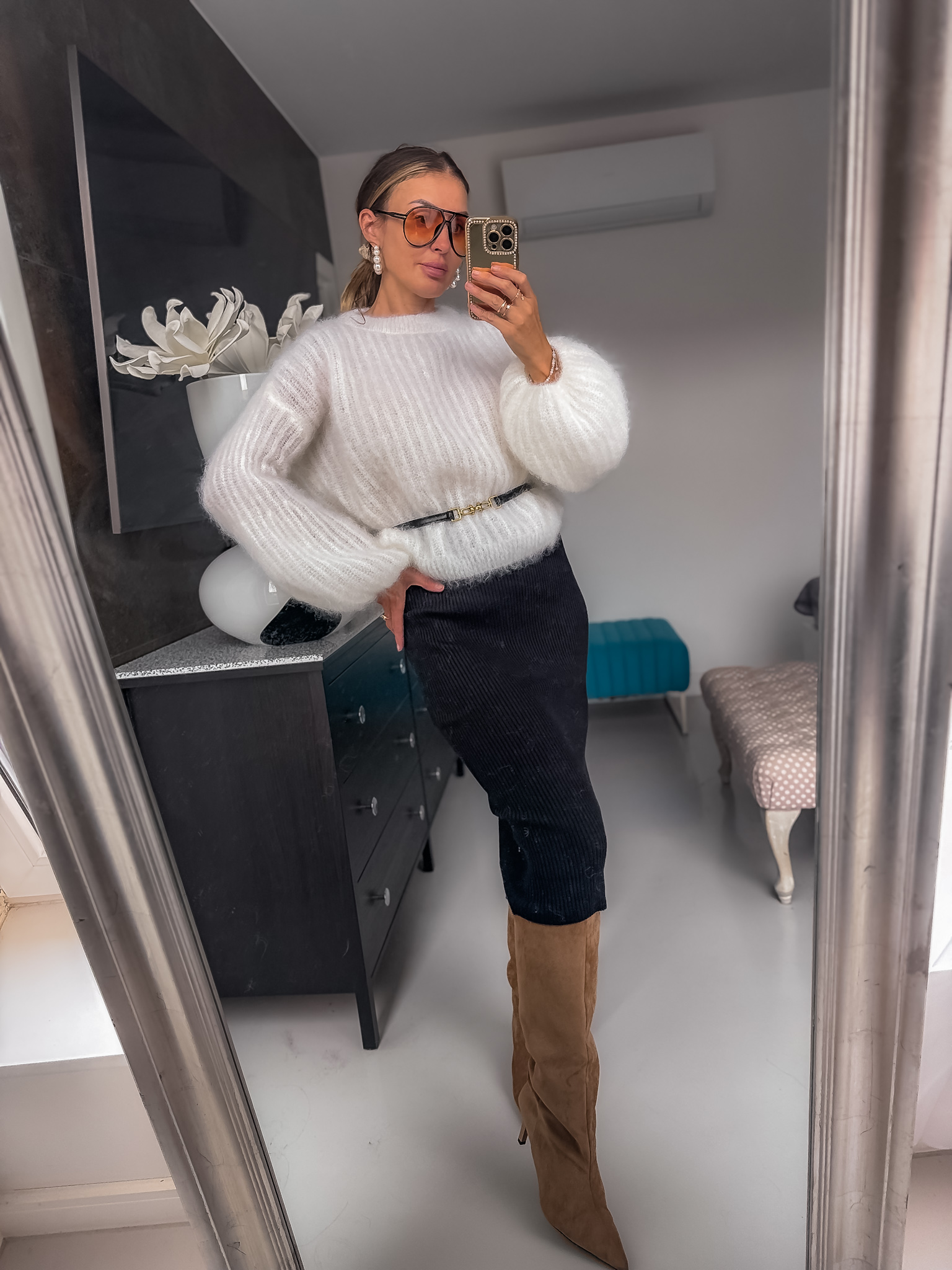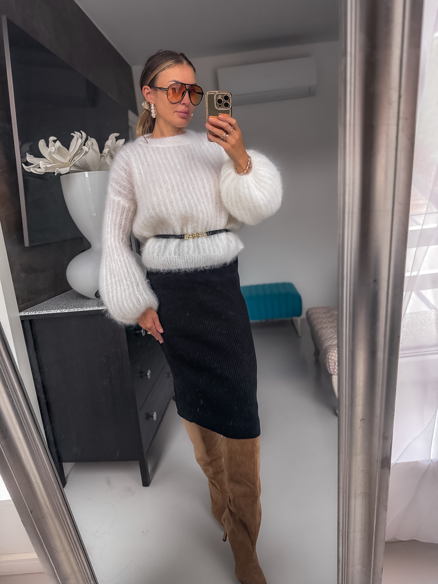 Spódnica swetrowa tkanina elastyczna ma gumkę w talii jest elastyczna przepięknie podkreśla sylwetkę ma wysoki stan wyszczupli brzuch w talii
