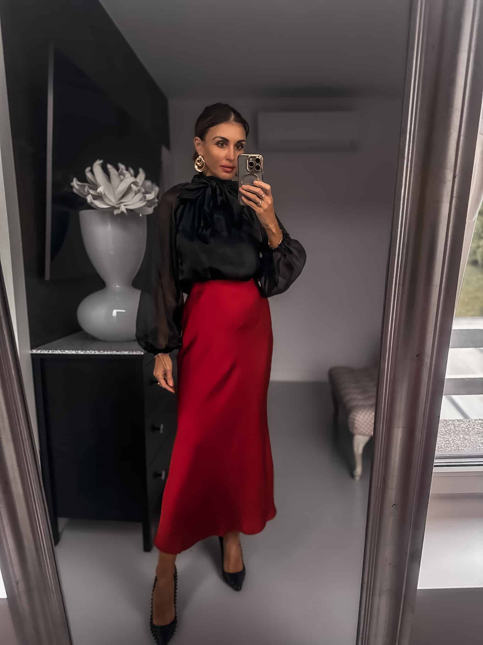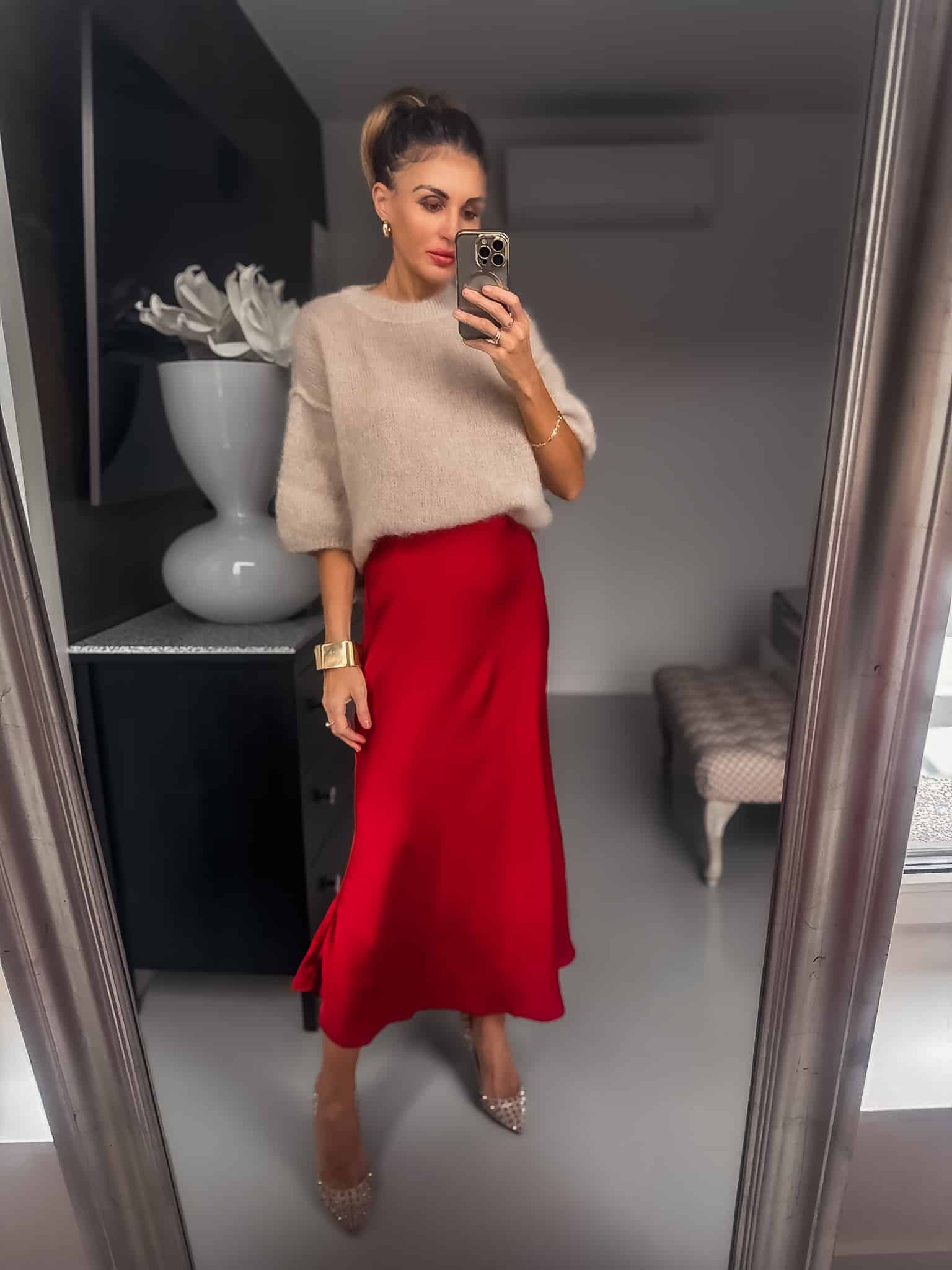 Spódnica jest dopasowana u góry poszerzana ku dołowi , idealna dla każdej sylwetki jest bardzo elegancka tkanina satynowa bawełniana lecz nie swieci się jak typowa satyna posiada gumke w talii jest elasdtyczna