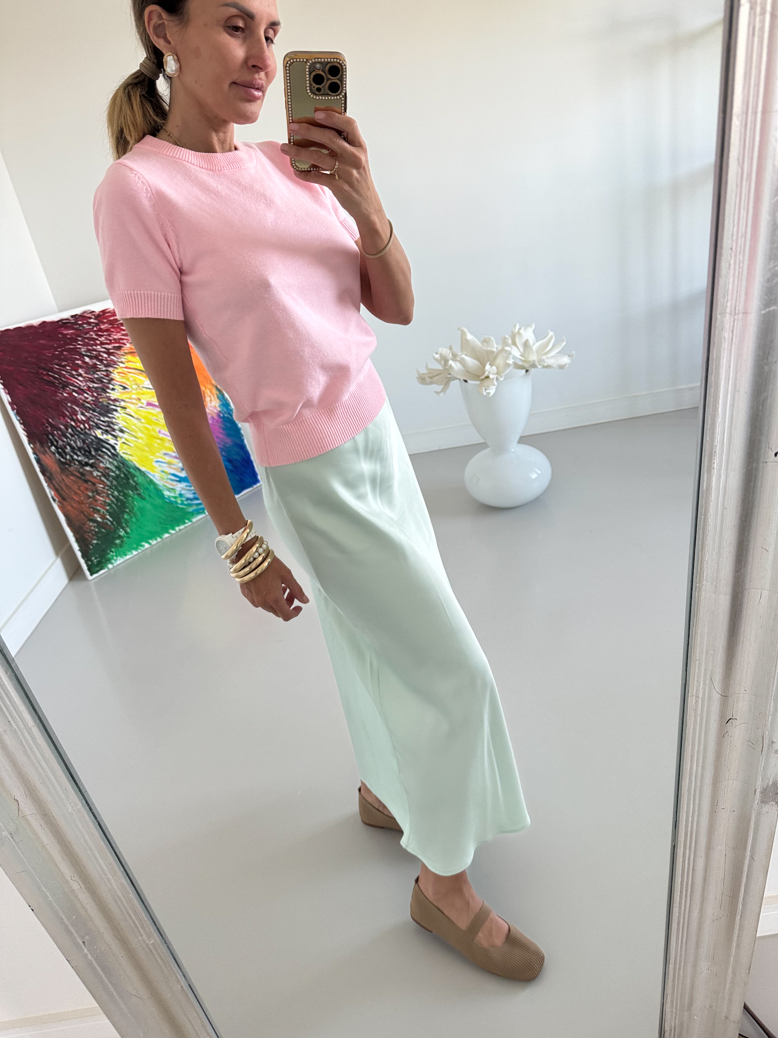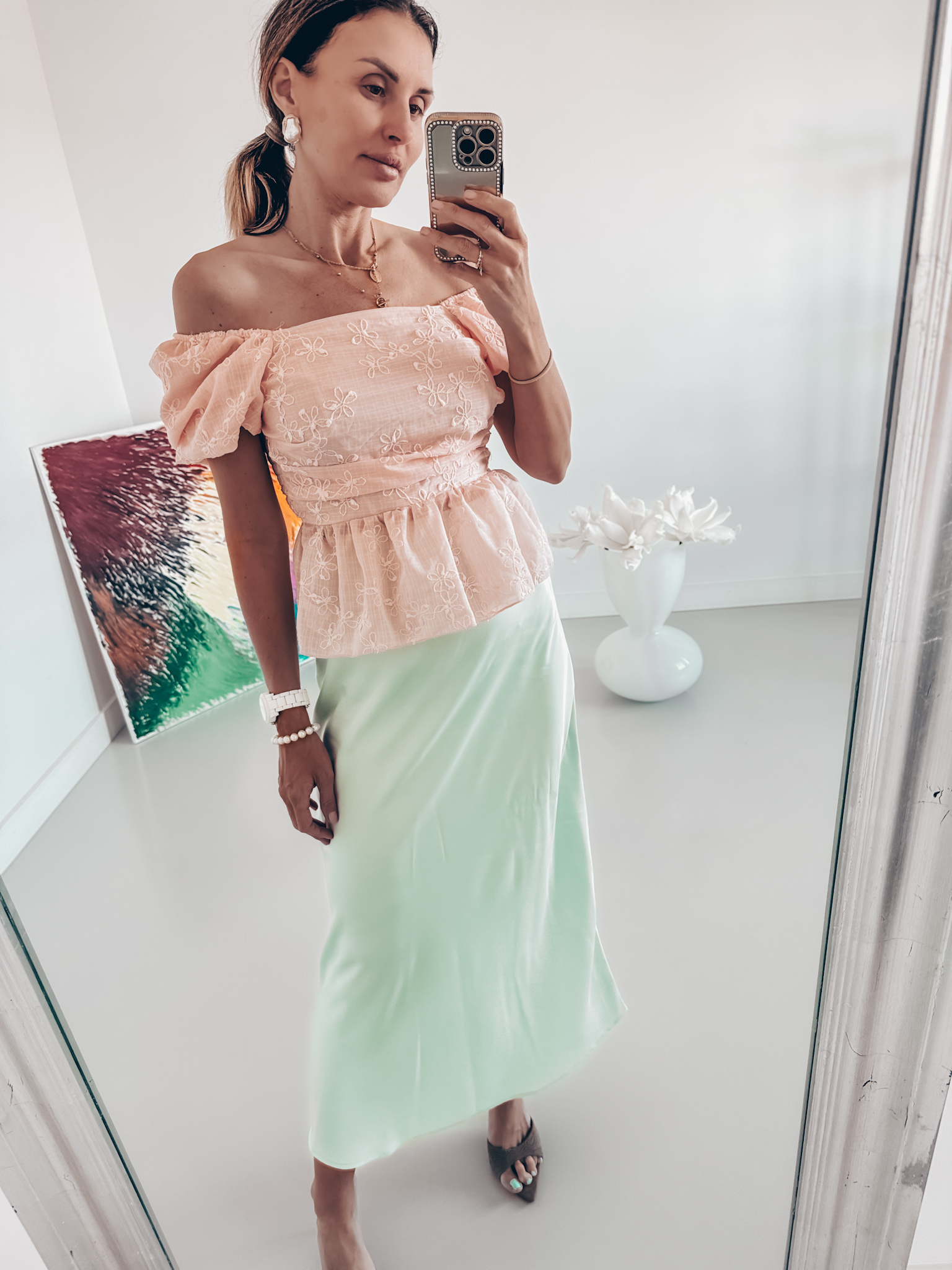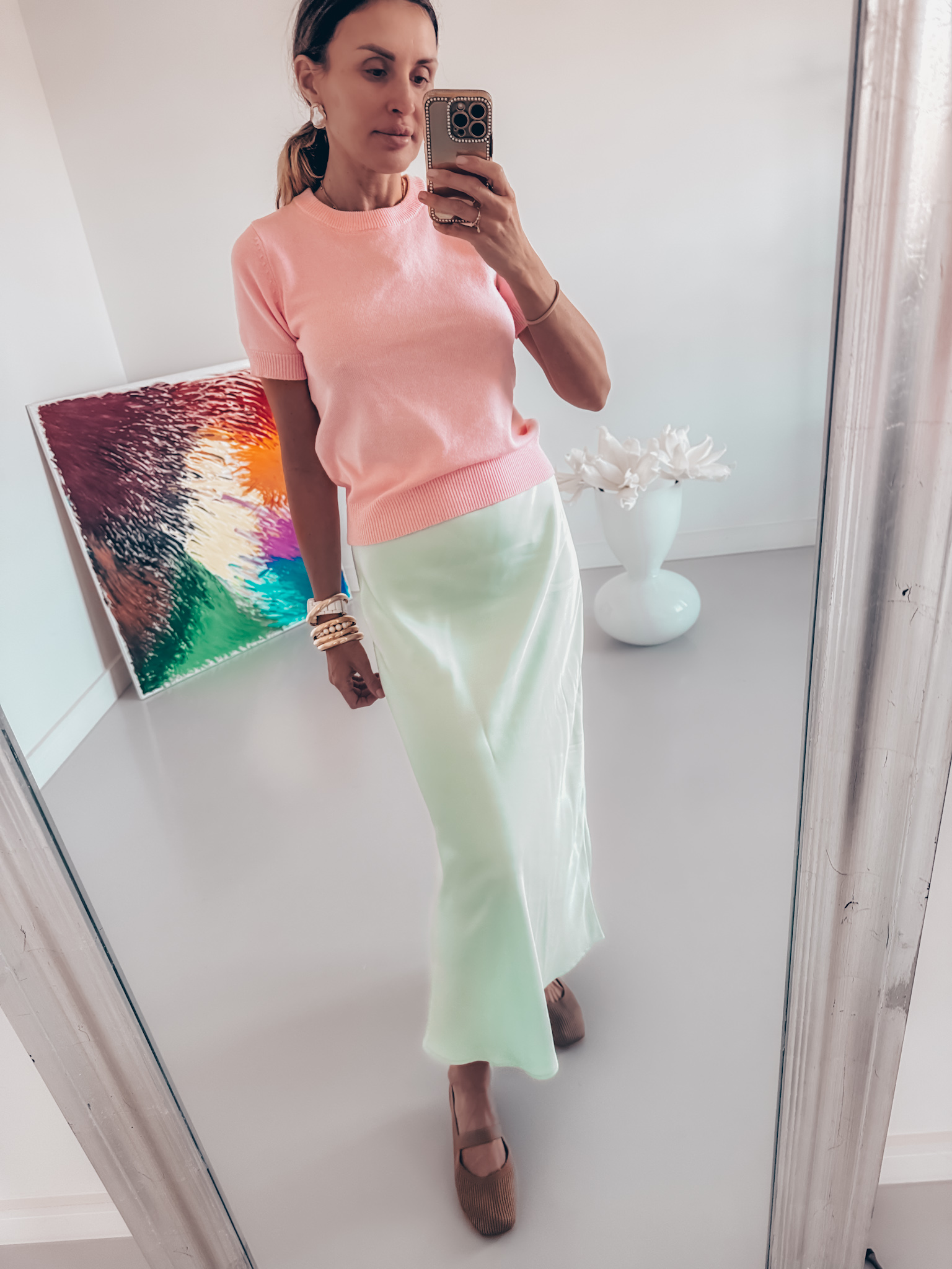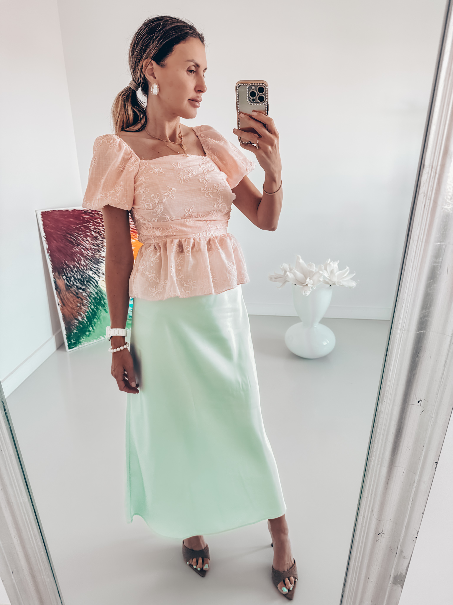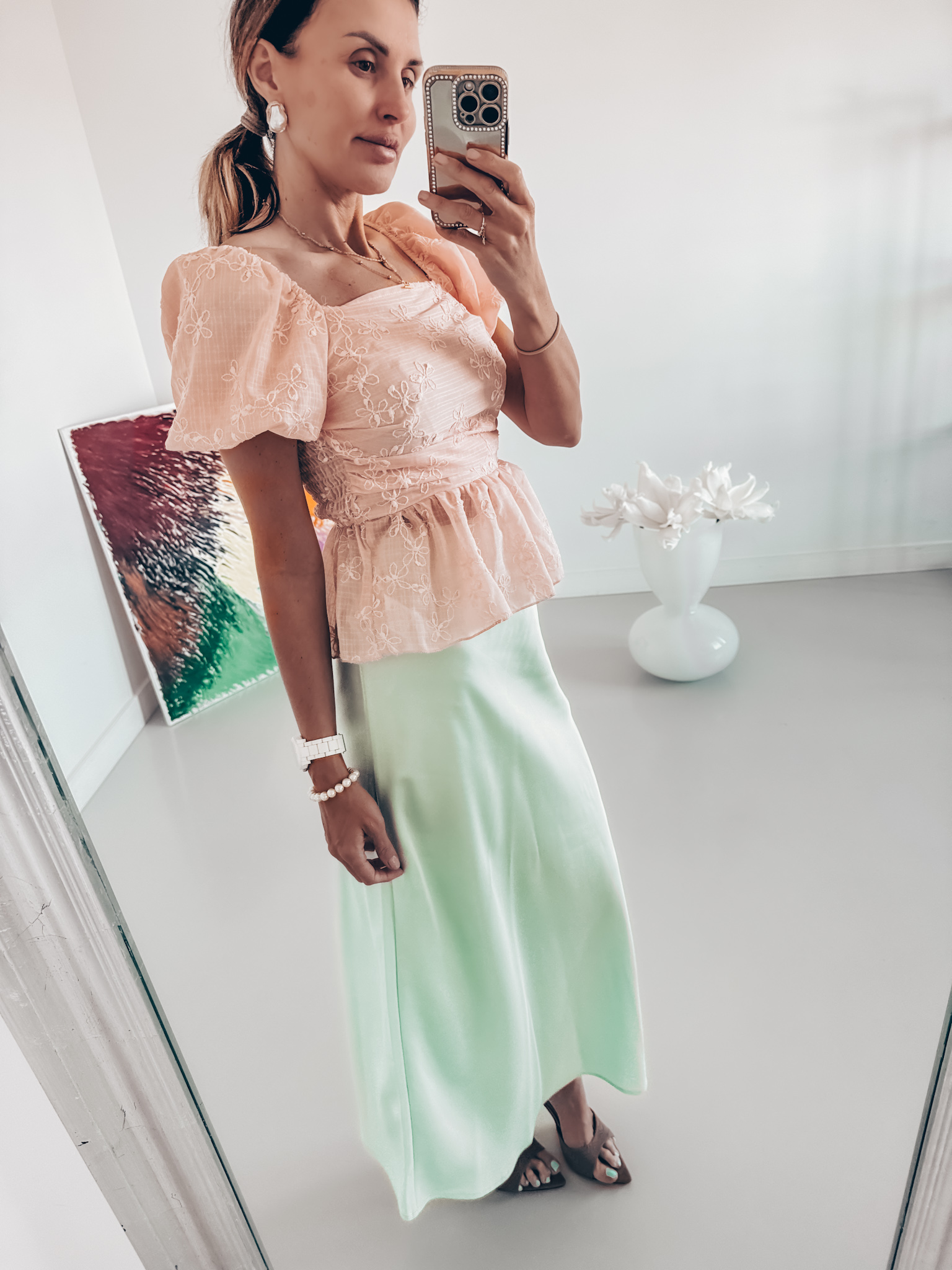 Spódnica z elastycznej tkaniny satyna jest dopasowana i wyszczupla jest elegancka lekko elastyczna z wysokim stanem super robi talię ma gumkę w talii