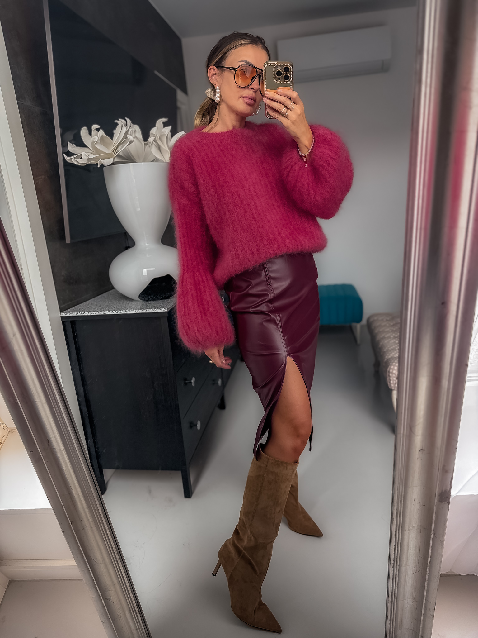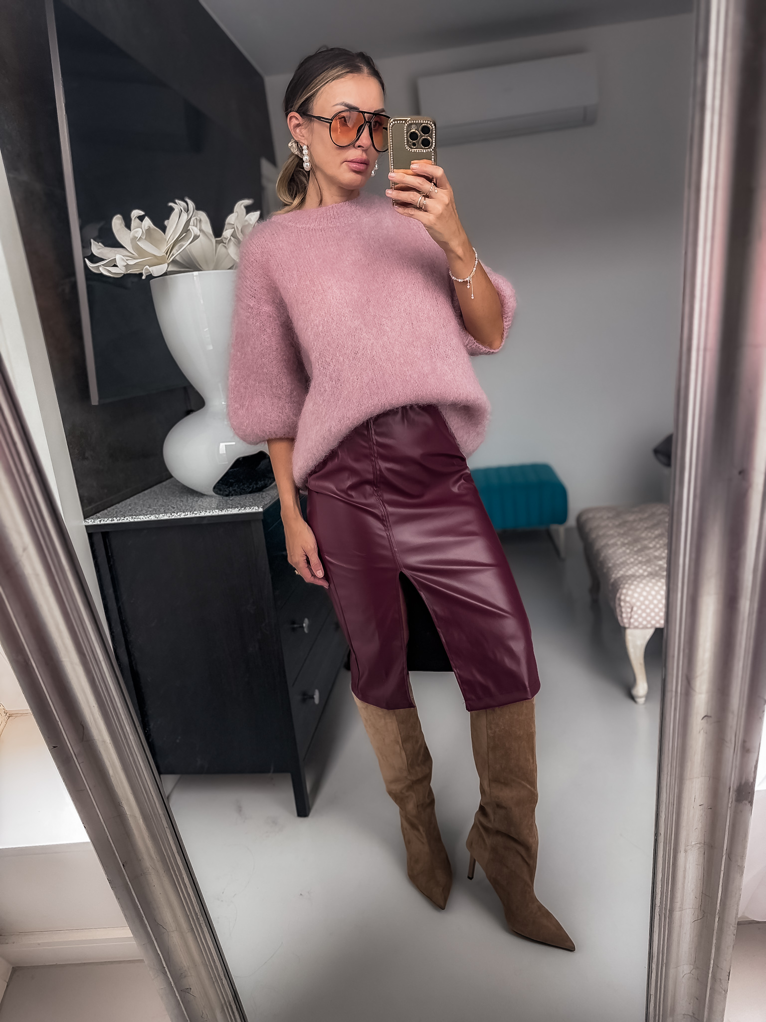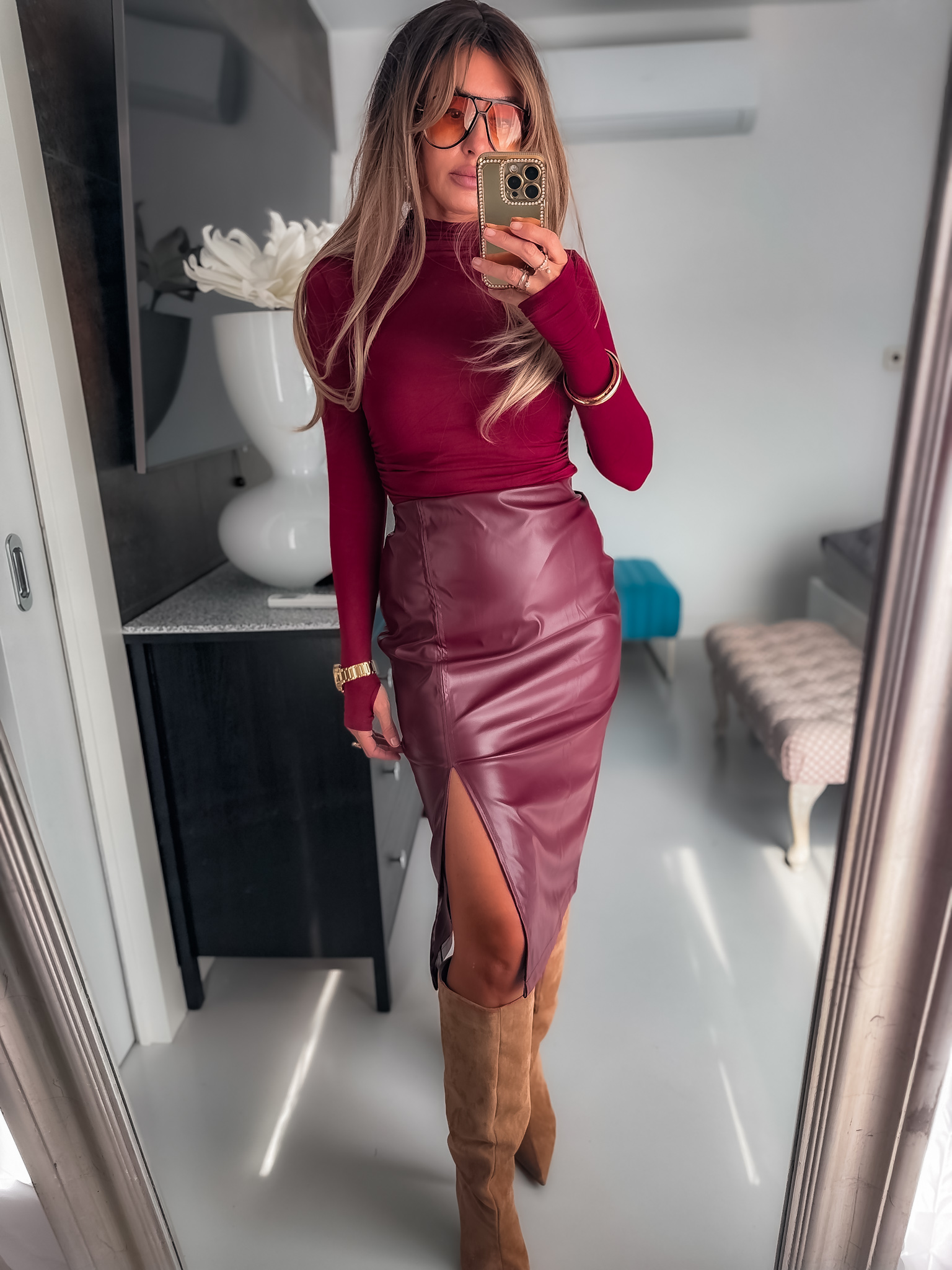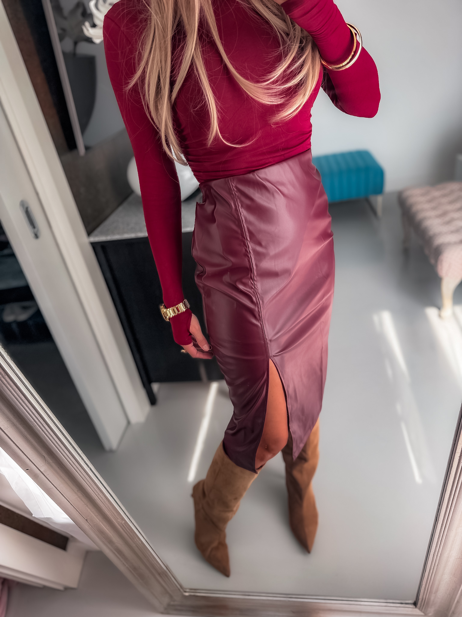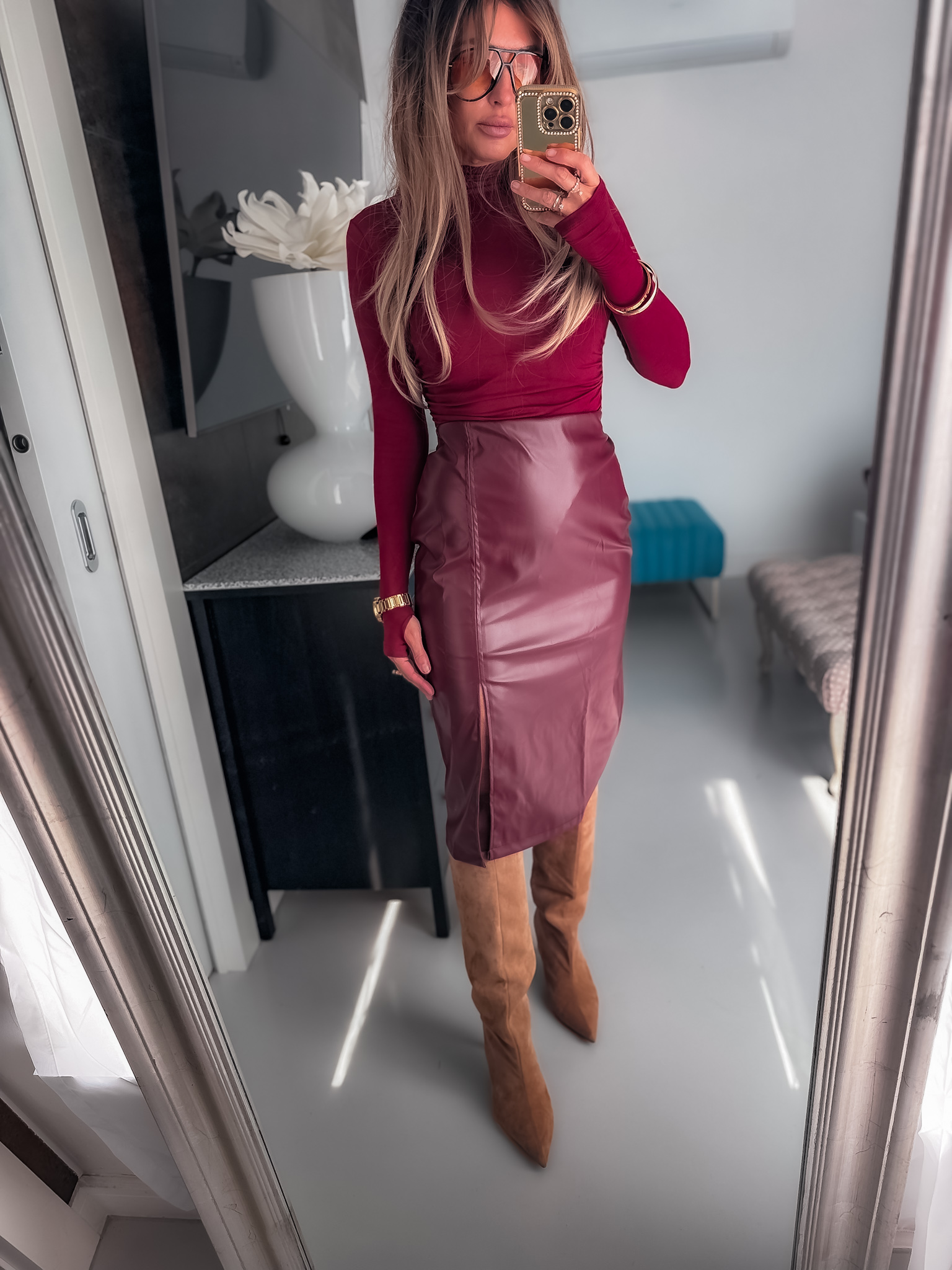 Spódnica z Eco skóry tkanina elastyczna na podszewce ma gumkę w talii jest elastyczna przepięknie podkreśla sylwetkę ma wysoki stan wyszczupli brzuch w talii