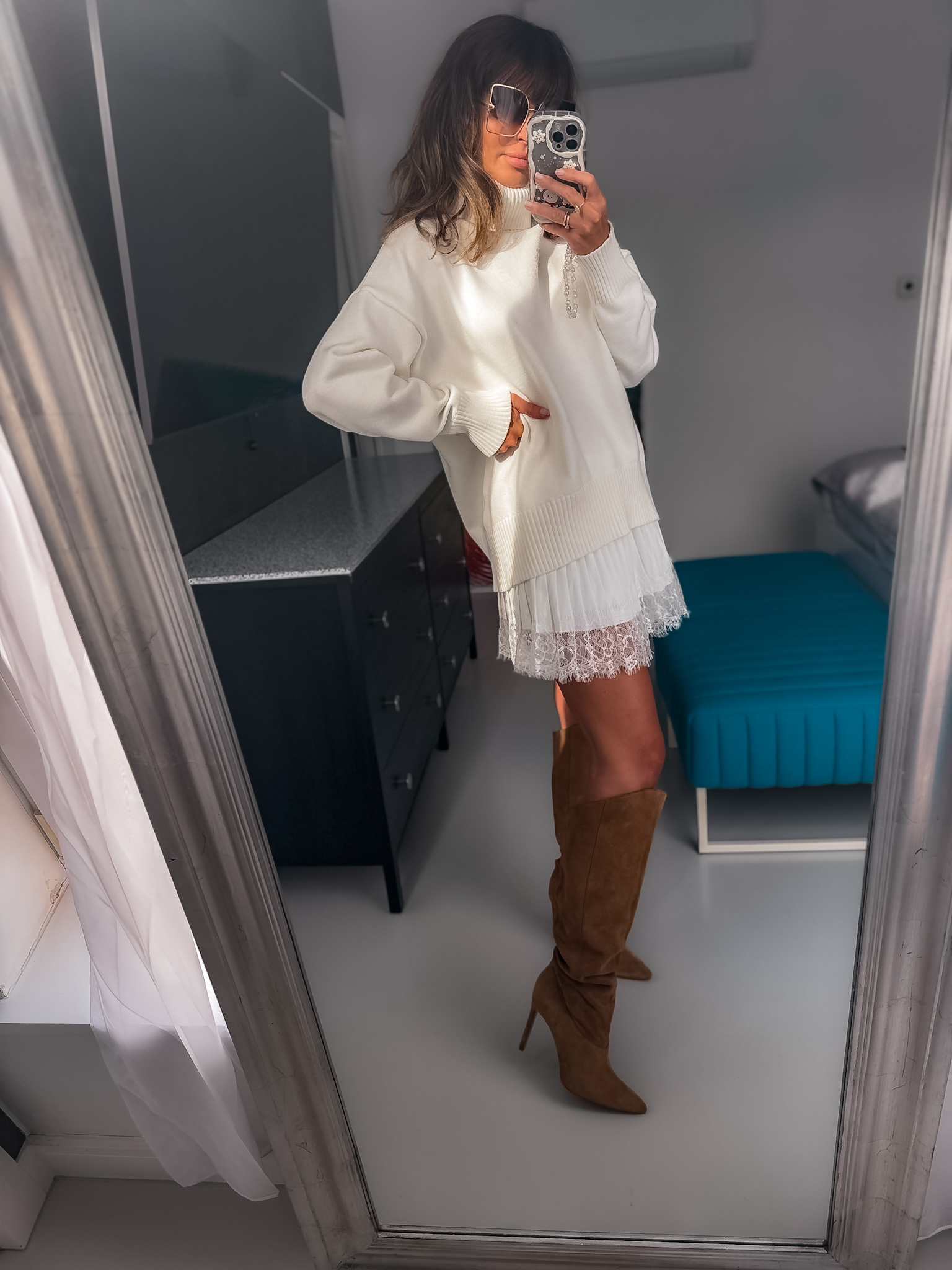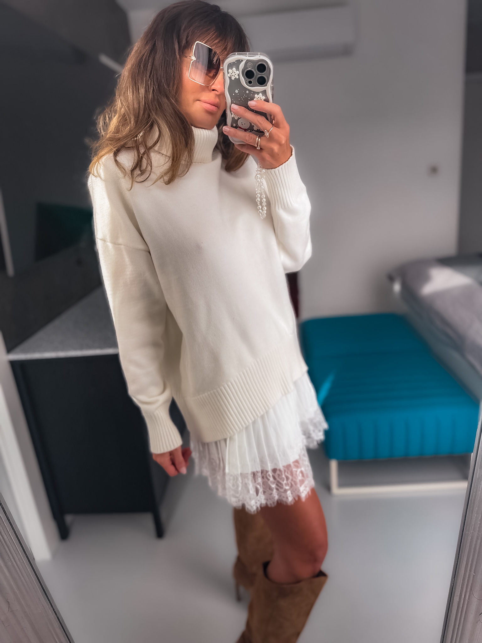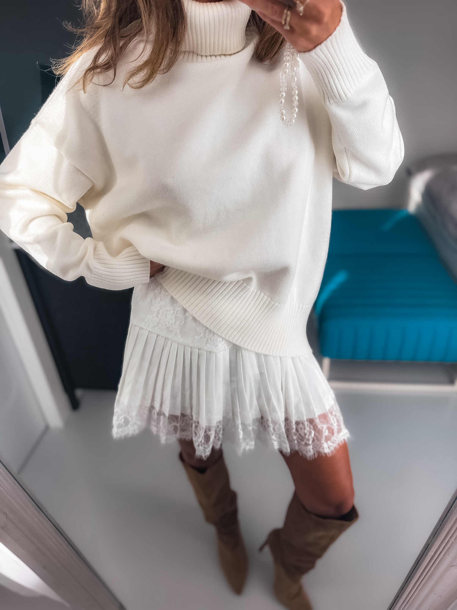 Spódnica z cienkiej tkaniny i koronki piękny fason można nosić pod swetr lub do topu