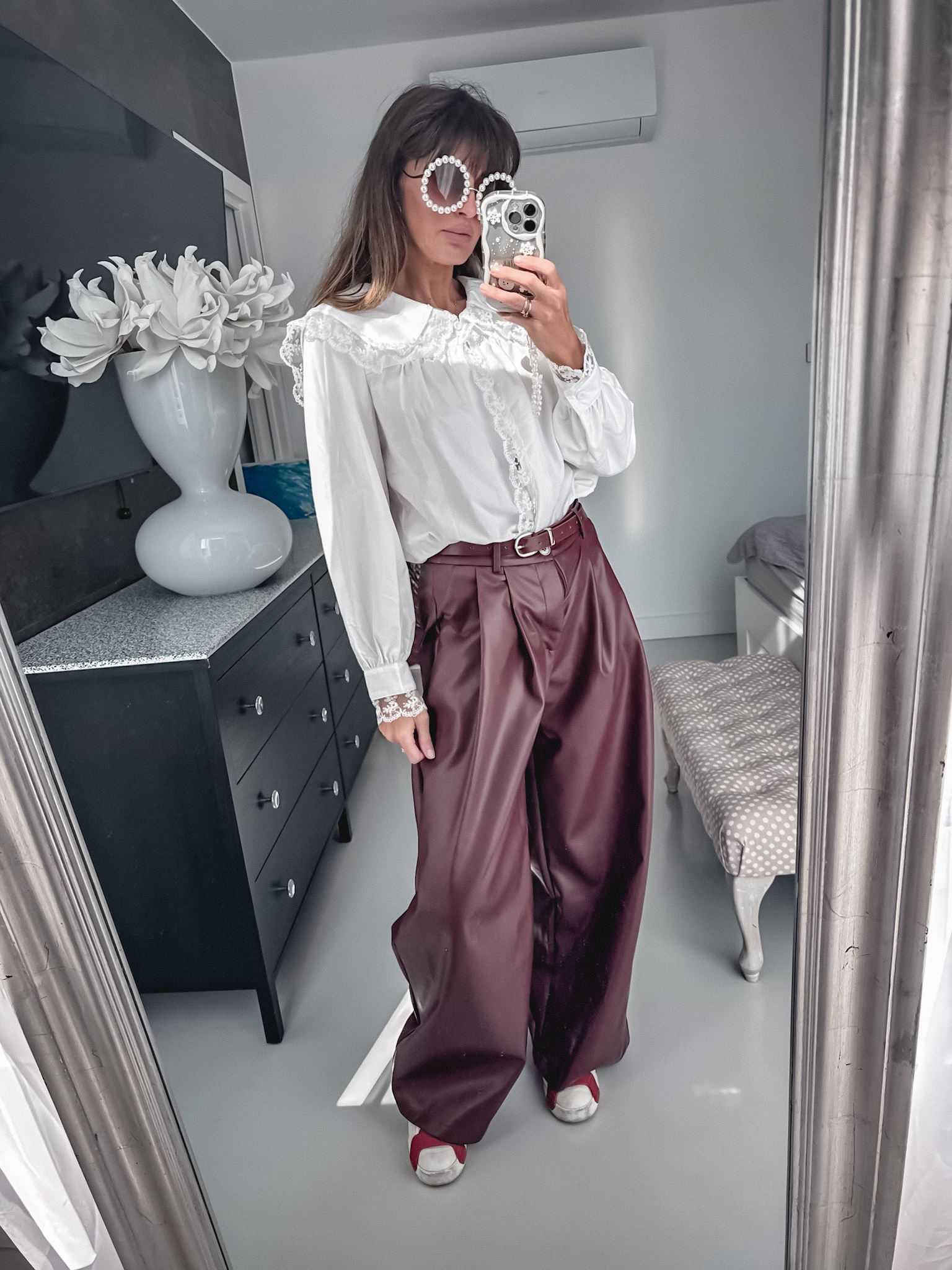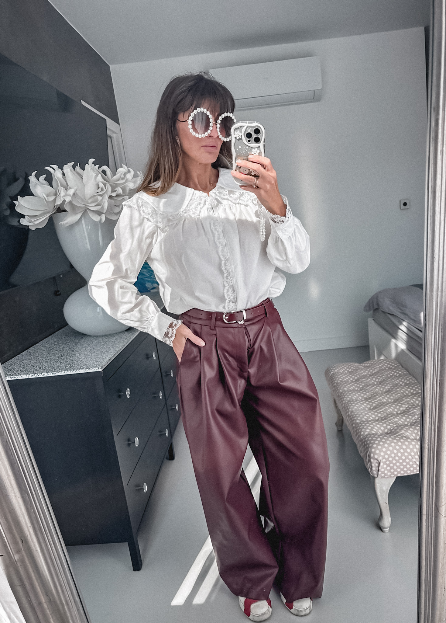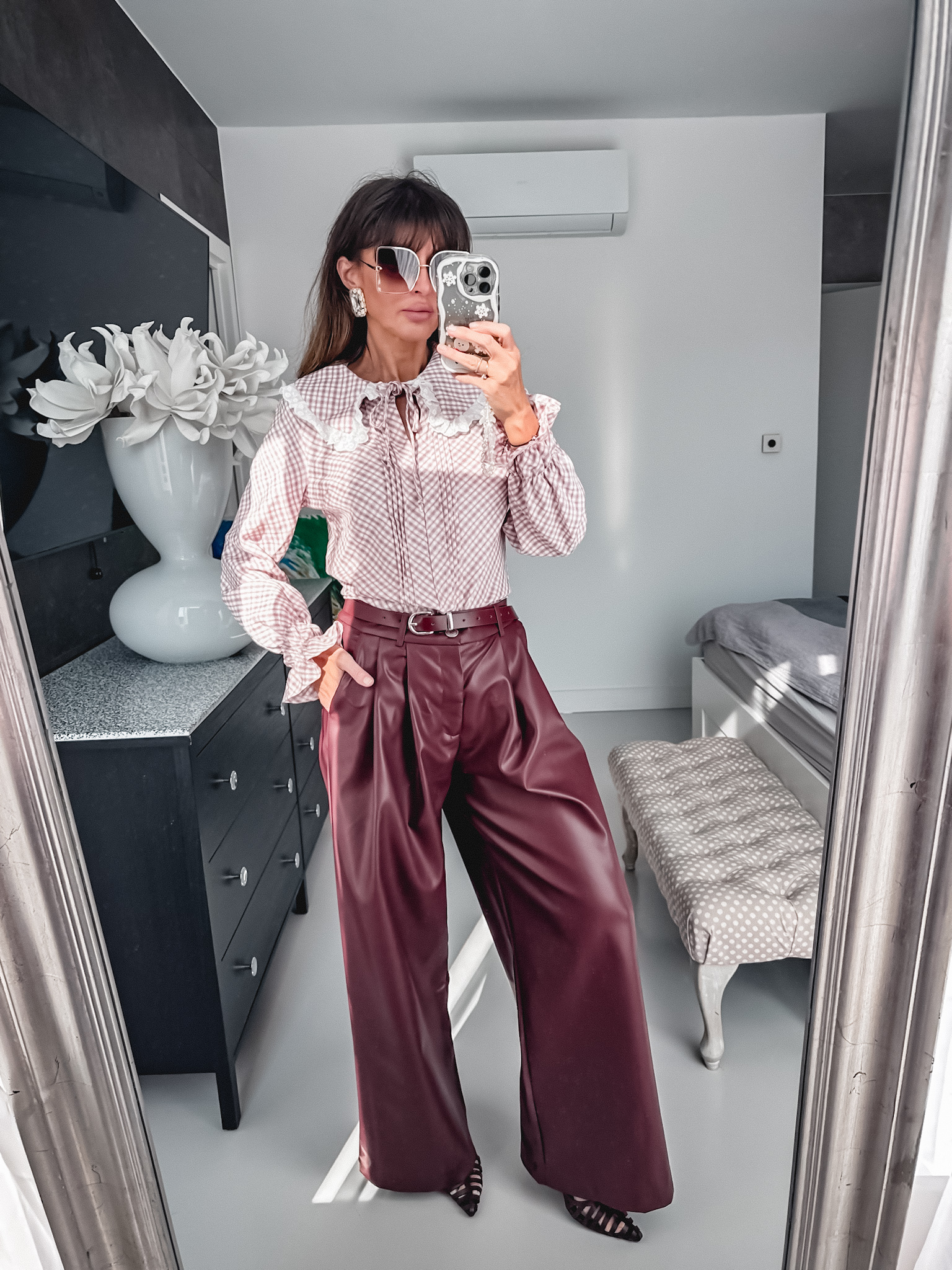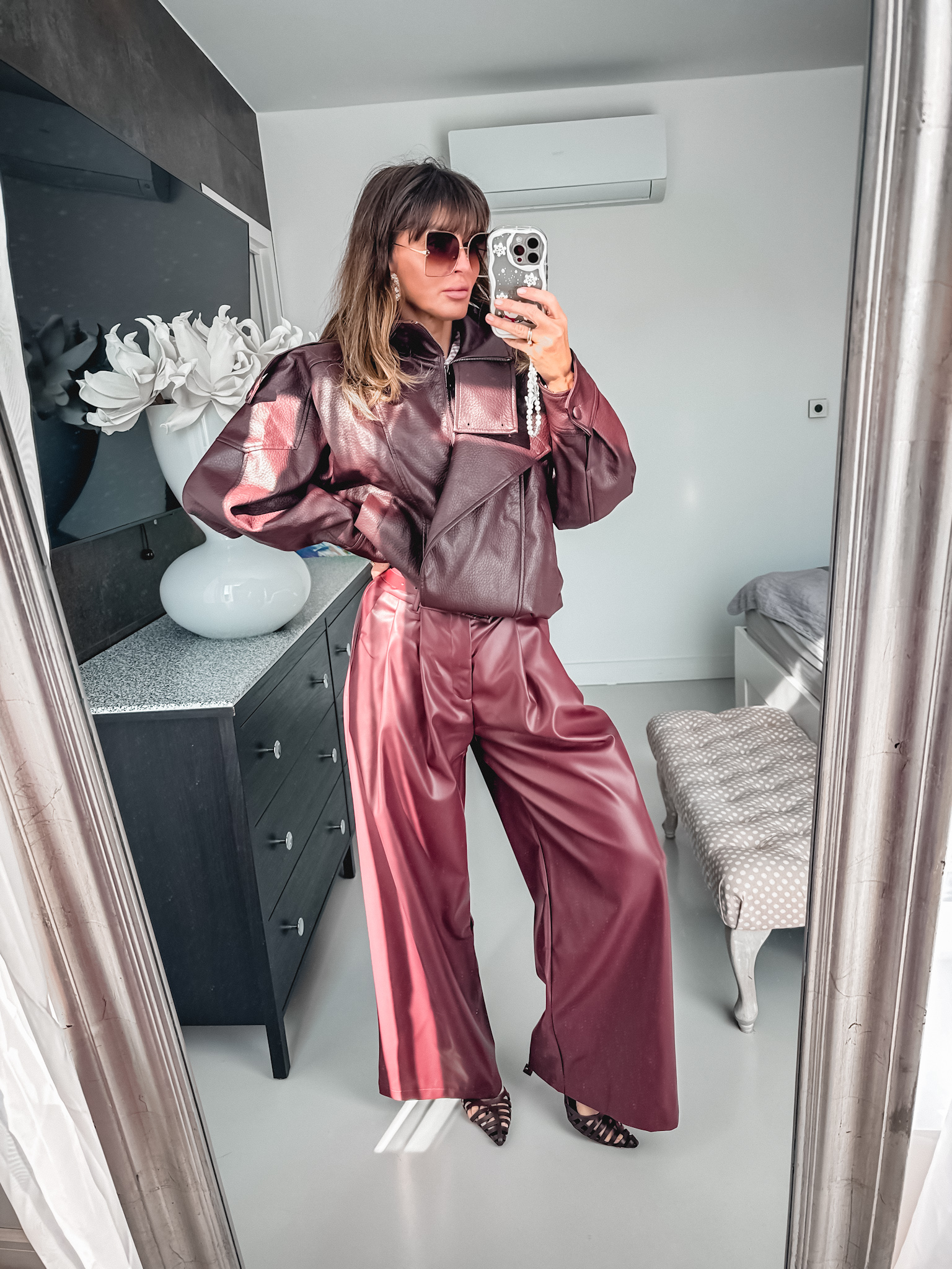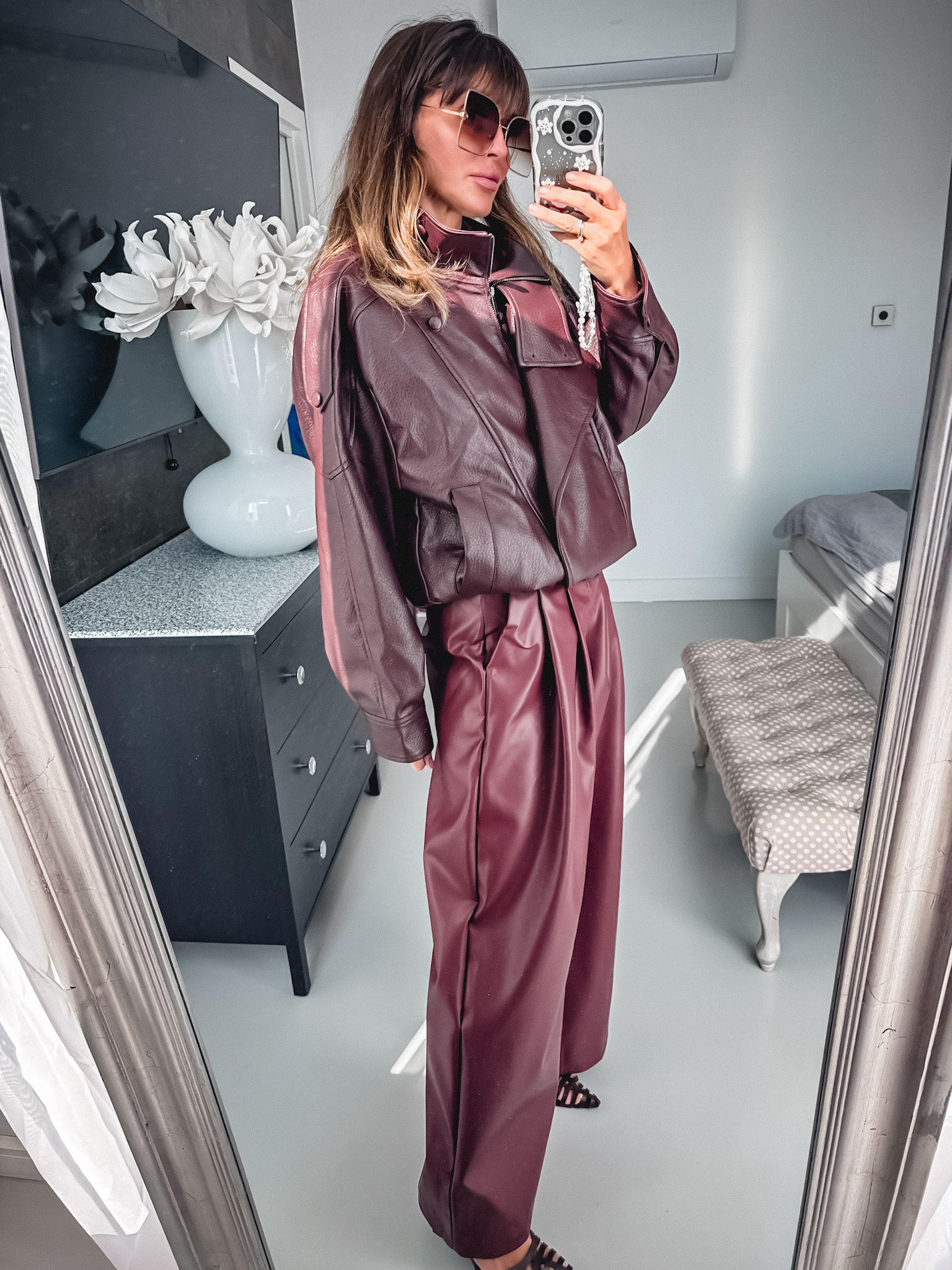 Spodnie z Eco skóry na podszyciu sa szerokie super fason w zestawie z paskiem idealne na wiosne wydłużają nogi