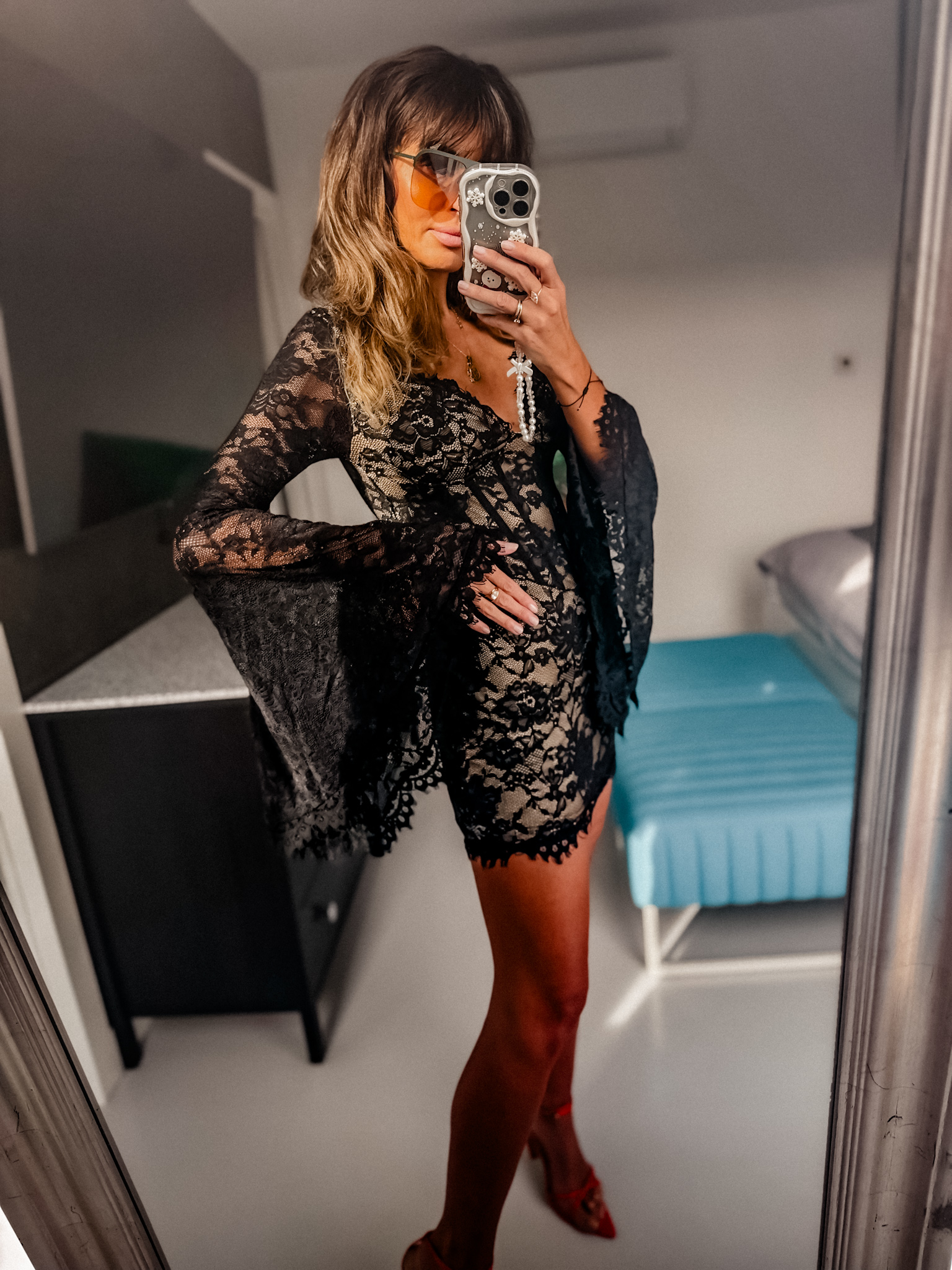 Przepiękny model koronkowy sukienka ma super rękawy podszewkę beżowa i fiszbiny przy talii wyszczupla jest elastyczna